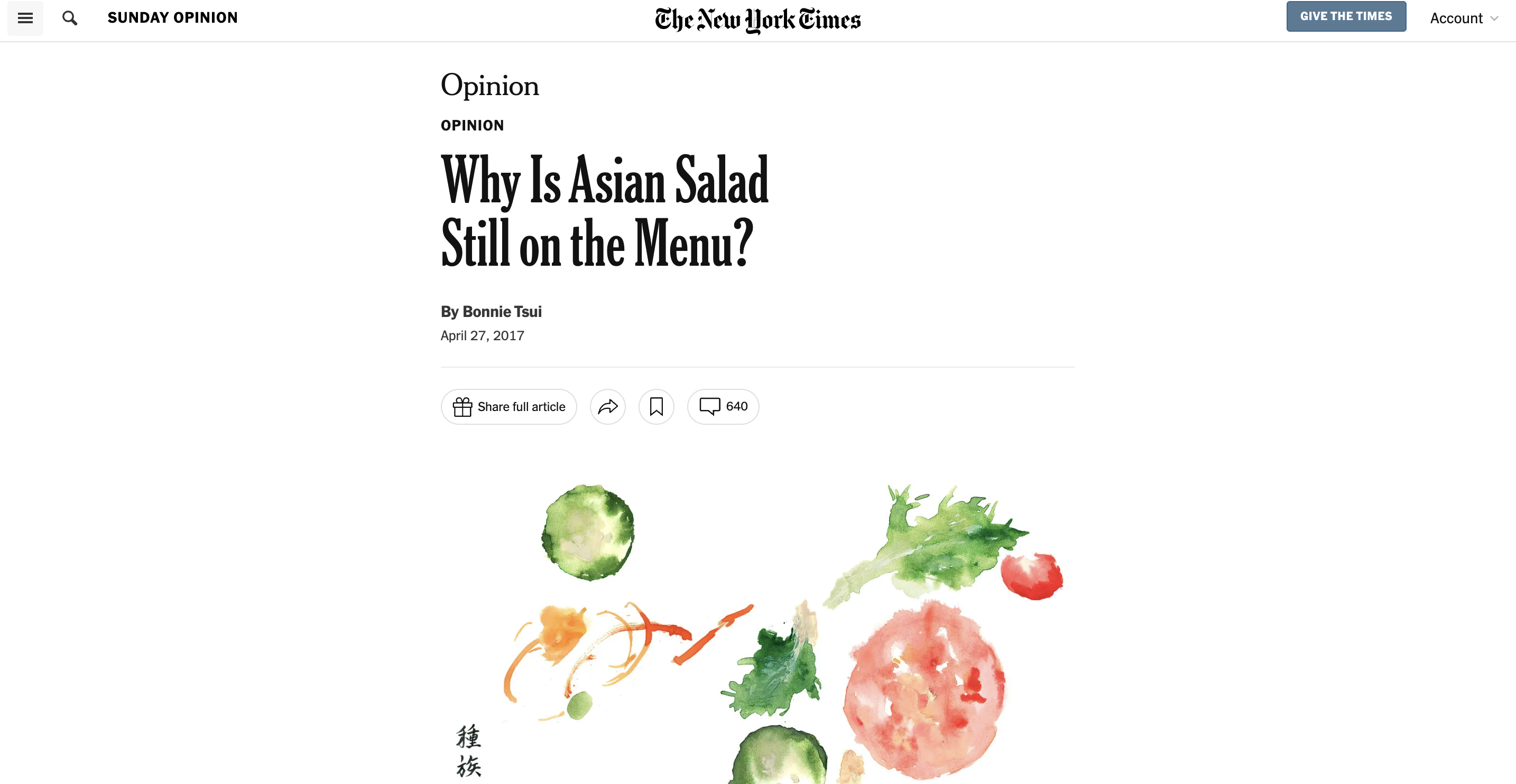 even though Asian cuisine and culture can't be reduced to one identity? It is hardly different from how Asian Americans have been treated up until recently. And still, Asian Americans are reduced to one region of the globe (East Asia).